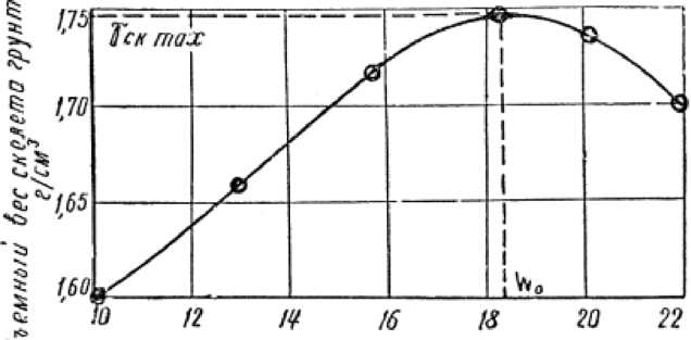 Малосвязные и несвязные грунты (супеси и пески) эффективно уплотнять при влажности в пределах 0,8-1,2 W0. При одноразмерных песках минимальное значение влажности составляет 6-8%, так как в противном случае уплотнение песков окажется весьма затруднительным.